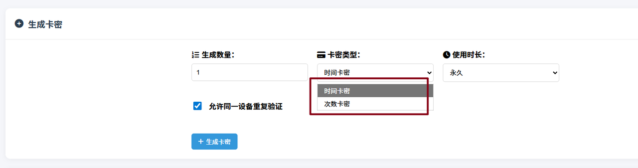 但它的卡密是手动填写的,而且没有过期时间的概念,不符合我的需求。