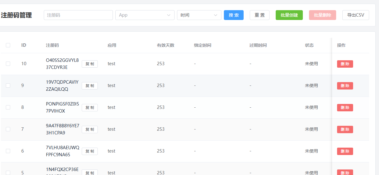 - 初期不加入支付功能,只实现注册码生成和验证接口。
