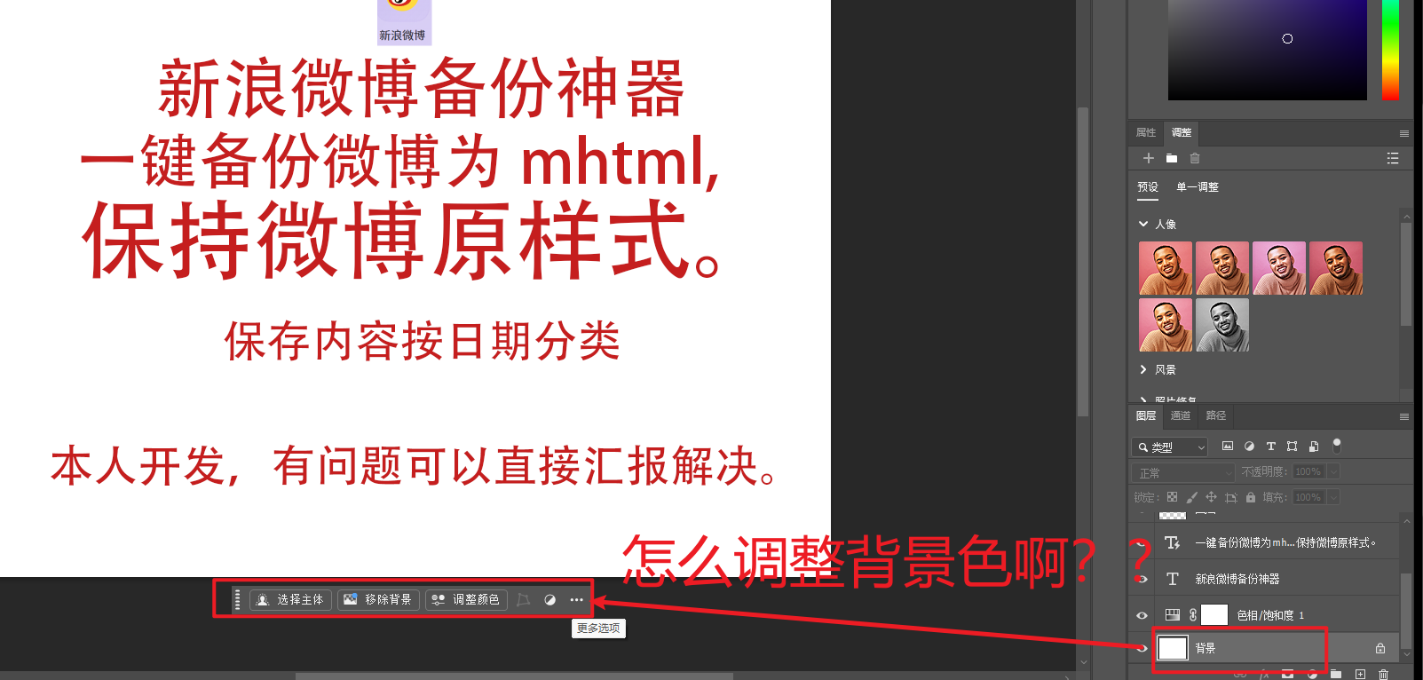 于是我想用PS自己拼吧。 结果发现PS对我来说实在太难用了! 我想换个某个图层的填充色,却不知道从何下手。