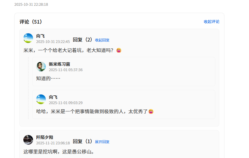 而且为了页面整洁,评论默认是 折叠状态,点击即可展开查看,体验非常接近原平台👇