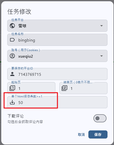 1.8 雪球支持分页范围下载